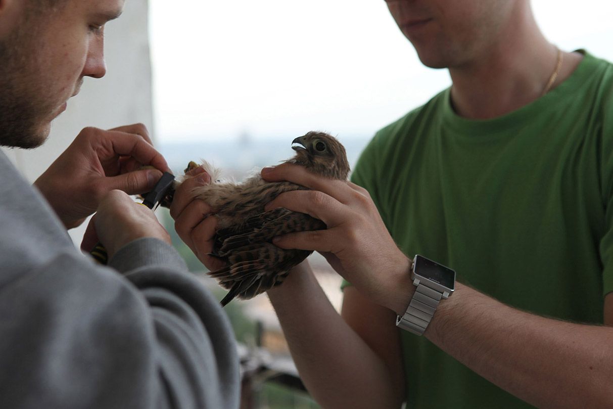 Obrączkowanie pustułek na jednym ze szczecińskich osiedli